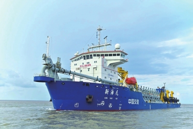 本报讯 近日,长江口深水航道回淤趋势明显,中港疏浚公司迅速调遣大国重器“新海虎”轮,拉开2024年长江口航道维护疏浚工程序幕。 (胡仲强 文/供图)