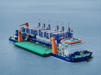 当前,上航局以人工智能为引领,积极推动产业革新,正加速从“传统疏浚”向“绿色智能”转型。超大型自航绞吸式挖泥船“新海鲨”轮率先实现AI全场景深度融合应用,总装机功率和绞刀功率均超越亚洲同类船舶,在中东人工岛吹填项目中与欧洲疏浚公司同台竞技,充分彰显“中国智造”的强大实力;全球最大舱容LNG双燃料动力耙吸挖泥船“新海鲟”轮在LNG模式下,氮氧化物排放减少90%,二氧化碳排放降低20%,实现硫氧化物及颗粒物的零排放,填补了行业空白;国内首艘大型多功能智能环保铺排船双子星“交通建设九号、十号”实现了自动铺排、智能吊装、作业可视化等多项技术突破,生动践行了“科技让自然更美好”的发展理念。