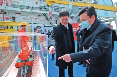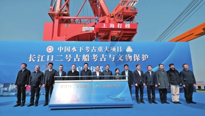 洪冲局长表示,上海打捞局作为国家专业抢险打捞队伍,深感荣幸承担古沉船整体打捞迁移工作,将坚决贯彻落实习近平总书记关于考古工作的指示精神,按照国家文物局和上海市的决策部署,以最高的政治站位、强烈的责任意识、自觉的历史担当,积极服务国家文博事业发展、水下文物考古保护、地方文化软实力建设,着力发挥和挖掘我局在水下沉船沉物打捞方面的能力特长,密切配合上海市文物局,加强与有关方面的沟通交流,强化担当作为,认真履职尽责,严格按照相关要求,科学施工作业,倾尽全力做好人员、装备、技术等保障,并创新性的首次采用世界领先的弧形顶梁技术,以及液压计算机联控提升技术进行沉船整体打捞,确保安全、高效完成长江口二号古船整体打捞迁移工作,充分展现国家专业抢险打捞队伍的担当作为和能力水平,努力为涵育民族文化自信、推动长三角一体化发展、保障上海国际航运中心建设,作出新的更大贡献。