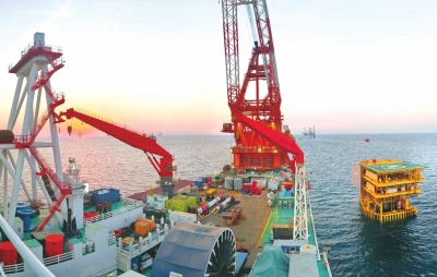 目前,“创力”轮正坚守于沙特ABSF油田项目现场,执行海上石油平台建设任务。在完成MRJN油田两套立管安装及ABSF油田导管架安装后,项目再次实现重大节点突破——顺利完成石油平台组块的精准吊装。此举标志着“创力”轮中东项目首个组块吊装完成。