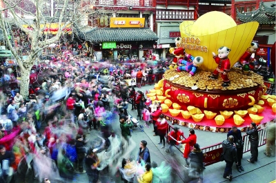 熄灯一年的豫园灯会,在猴年新春重又瑞璨回归。从大年初一到正月初六,豫园商圈进入客流共计120.1万人次,比2015年的92万人次上升31%。春节长假7天,从早到晚观灯的人流如潮,各个灯组周围摩肩接踵,尤其想一探九曲桥畔荷花池里灯彩的倩影,虽需排上一段时间,游客们依然乐此不疲,耐心等候。每天保持15万的客流量,把豫园商圈的角角落落都撑得满满当当。为什么办了20届的豫园灯会依旧人满为患,其引力波究竟在哪里?