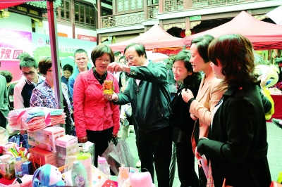 义卖现场,随处可见志愿者忙碌的身影。针对不同的顾客介绍不同的商品,尽量让顾客在奉献爱心的同时得到满意的服务;小朋友光顾时,更是要积极地宣传下母亲节和爱心帮困的意义,希望在幼小的心灵播下爱的种子;在顾客稀少的时候还要抽空光顾下别的爱心商家摊位,真可谓出钱又出力,忙得是不亦乐乎。义卖期间,上海市妇联、黄浦区委、区妇联、区总工会的领导专程赶来现场慰问爱心商家及现场的志愿者们,公司党委书记、总裁梅红健在听说了义卖物品背后的故事和来历后,兴致盎然地在摊位前充当起了导购,极力推销凝聚了员工爱心的义卖品。一天的义卖结束,看着由一堆义卖品变成一沓爱心款时,在细细的春雨中,志愿者们的笑容显得尤为灿烂。