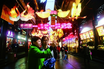 进了城,造型就一定要凹好。猴年豫园灯会花灯如昼的盛景还历历在目,老庙黄金福佑店门楼上的城隍老爷花灯道着“恭喜发财”的吉祥寓意,老庙黄金好运猴抱来了金元宝,也送来了招财纳福的美好祝愿,伴着“老庙黄金给您带来好运气”的品牌语,“城”里人迎来了满载祝福的新年。园里成双成对的鸳鸯灯、天鹅灯、鹦鹉灯,处处诠释着亚一珠宝“一路爱一路纪念”的品牌理念,用爱情鸟相厮相守的甜蜜寓意为进“城”的有情人儿送去最美好的祝福。