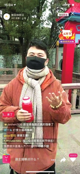 于是乎,被同事们认证的“逗比、话痨”,也就是我本人顺利地被选拔为豫园文化创意制造所的第一任主播。本来以为凭我平时跟客人介绍商品的经验,上个直播应该绰绰有余了,但事实证明我真的too young too naive了。第一次直播定在了2月8日元宵节当天,我进入了文昌街上的上海印象礼品店、银杏树下守艺人等一系列文创小店,跟店员开始互动,解说每一个文创产品背后的故事,因为是元宵节当天,所以我特地走到了九曲桥广场,又带着粉丝们进入了宁波汤团店,想让不能来豫园看元宵灯会的粉丝们在线上感受他们最爱的豫园。