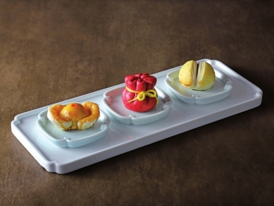 擅制手工酥点的绿波廊不仅年夜饭预订火爆,新近推出的冬季限定新品“四季平安套点”也倍受食客们的欢迎,成为了餐桌上当之无愧的新年“气氛组”。红色的椰蓉福袋外形小巧精致,看着也十分喜庆。据绿波廊副总经理王时佳介绍,红色的外皮主要是加入了天然的甜菜粉,呈现出喜庆的中国红,特制的椰蓉馅心吃起来清甜不腻,还带有阵阵椰香。两边的枣香元宝酥和黄金开口酥则代表“招财进宝”、“笑口常开”,不仅寓意佳口味也颇具特色,咸甜搭配满足了不同顾客的口味喜好。许多食客看到这盘点心上桌后都忍不住举起手机拍照,与亲朋好友一起“云分享”这份老字号的匠心巧思。