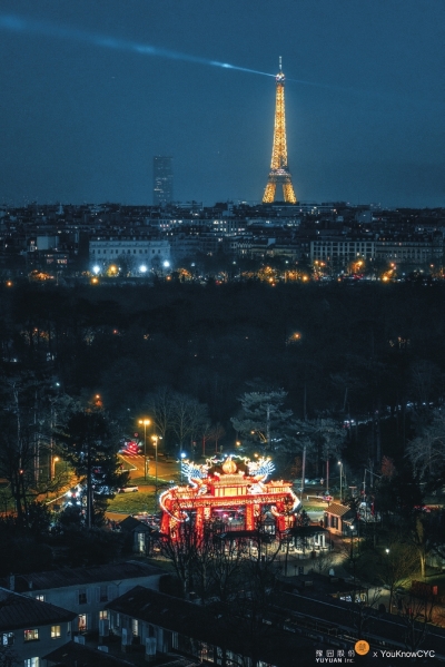 首次跨国举办,巴黎与上海双城双园同日点亮华灯。