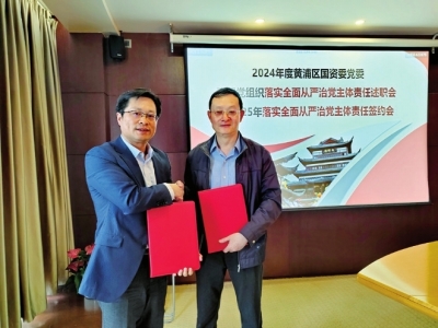 豫园股份党委委员结合分管领域和业务板块,围绕党建引领、赋能业务的总体情况进行了汇报交流。会上,包童斌和朱立新分别代表黄浦区国资委党委和豫园股份党委签订《2025年豫园股份党委全面从严治党主体责任工作目标责任书》。