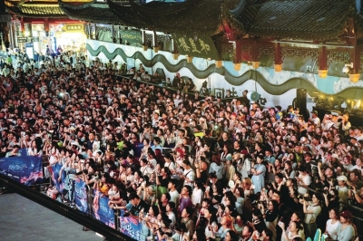 7月15日晚,“星河夜宴”音乐会揭开漫游季序幕。《黑神话:悟空》神曲演唱者者来女空灵献声,《百妖谱》主题曲《不可说》与《凡人》动画主题曲《凡人》响彻夜空;B站百大UP主浑元以灵魂唢呐引爆《大黑天》《执焰》、UP主二十四伎乐国风乐团奏响《天官赐福》经典《花满城》《一花一剑》;00后唱作人吴垚滔压轴演绎《牧神记》主题曲《天外的天》与《雾山五行》主题曲《渊海无畏》。声光电的完美交融,让豫园的夜空成为上海今夏最炽热的城市舞台。