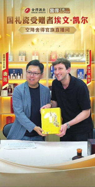 近日,中国外交国礼瓷获得者、《舍得智慧人物》第七季嘉宾埃文 • 凯尔首次亲密牵手中国白酒,“惊喜”空降抖音「舍得官方旗舰店」直播间。舍得酒业总裁唐珲走进直播间与这位国际友人,共话舍得中国智慧和中国白酒文化。