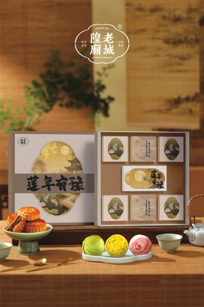 同样把古典艺术与现代美学融入月饼里的还有上海人都熟悉的老字号老城隍庙。今年推出的“莲年有豫”月饼礼盒纳入了九曲桥、荷花池、锦鲤等经典的豫园元素,取“连年有余”的谐音命名。里面涵盖了经典广式、桃山皮、彩酥三种类型、五款口味的月饼,充分满足天南海北不同消费者的口味偏好。