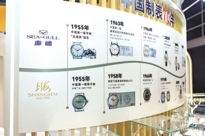 步入汉辰表业展区,首先映入眼帘的是精心策划的“中国制表70年” 时间走廊,沿轴线铺陈珍贵历史图像,如同一部微型的时光纪录片,向观众展示了海鸥表、上海表领航国表发展的无数关键篇章,叙述着中国制表业1955年至今从无到有、从小到大、从弱到强的演进脉络与非凡历程。